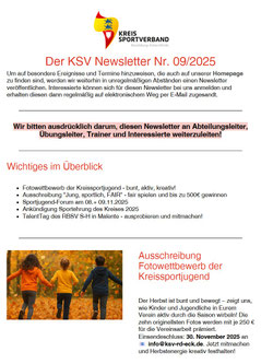 Unser kostenloser Newsletter informiert Sie in unregelmäßigen Abständen per E-Mail über besondere Ereignisse und Termine. Sie können sich jederzeit aus dem Newsletter heraus abmelden oder Ihre Einwilligung jederzeit per E-Mail an info@ksv-rd-eck.de widerrufen. Durch Absenden der von Ihnen eingegebenen Daten stimmen Sie unseren Datenschutzbestimmungen zu.
