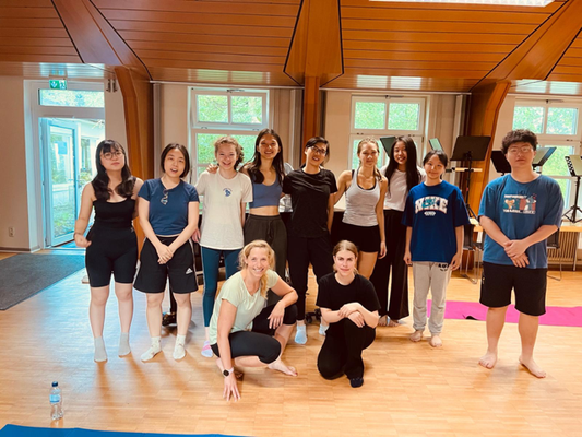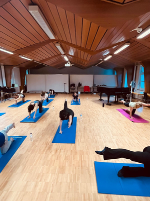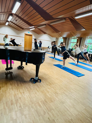 Unsere Trainerin Sandra Jasker hat mehrfach morgens vor dem Probenbetrieb im Nordkolleg funktionelles Training angeboten, das von den jungen Musikerinnen und Musikern begeistert angenommen